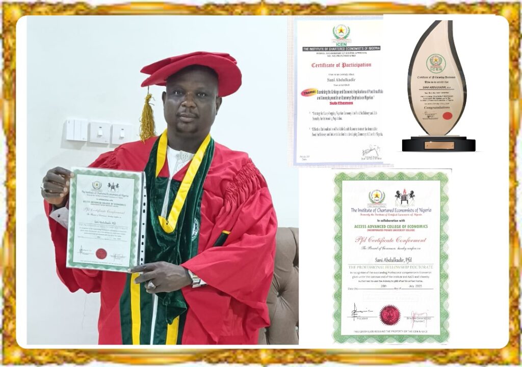 for his consistent contribution to economic development and policy discourse, particularly in areas addressing national economic growth, food sufficiency, and unemployment challenges in Nigeria.